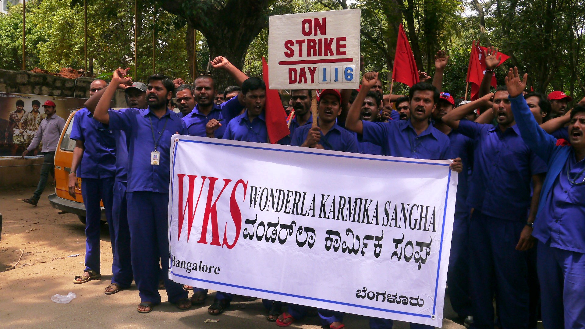 New Socialist Alternative (CWI-India) intervened in the general strike with leaflets, slogans and placards on the issue of a living minimum wage of Rs. 100 an hour, which is an ongoing campaign. In Bangalore our leaflets and slogans attracted a lot of attention, as we distributed more than 2,500 leaflets. Many workers, especially those on low wages, have volunteered to take leaflets to further the campaign.